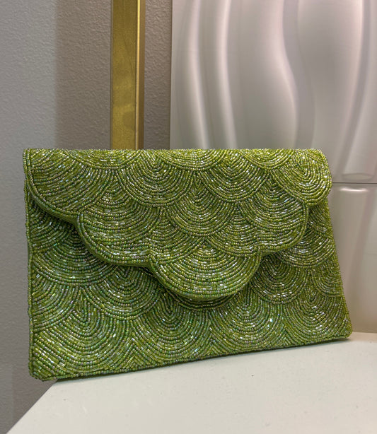 Elegant Rose Gold Double-Sided & Chained Beaded Shoulder Bag