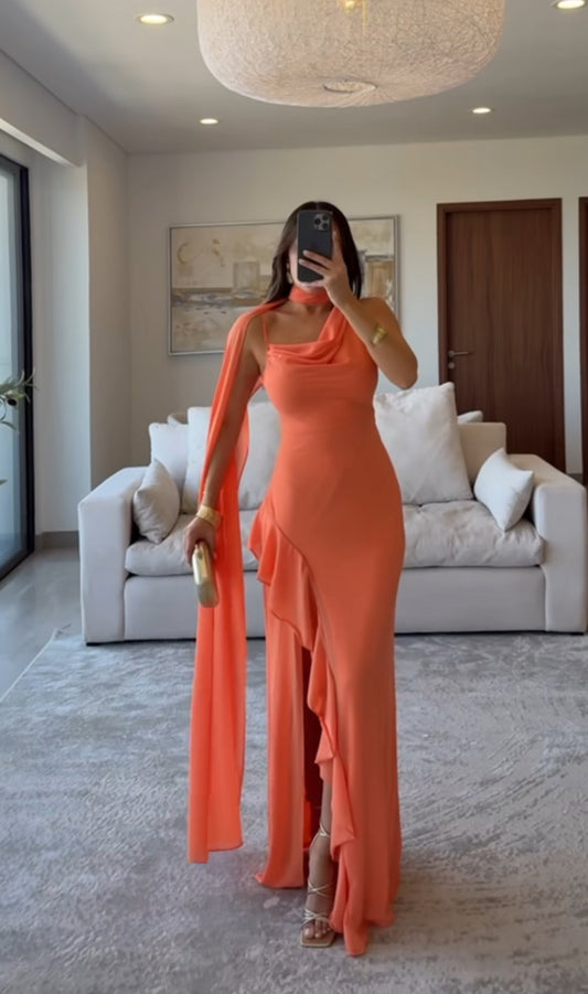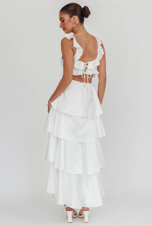Satin Ruffle Maxi Dress